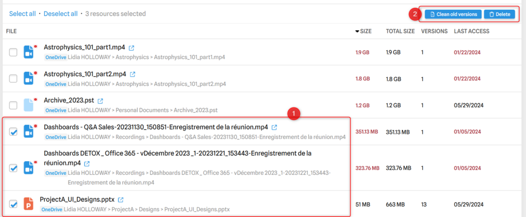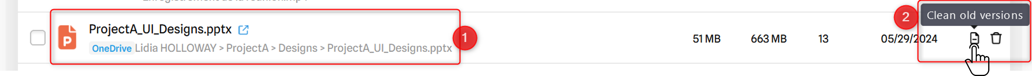 Thanks to this interface, you can manage and delete files / versions that you consider obsolete or unnecessary.