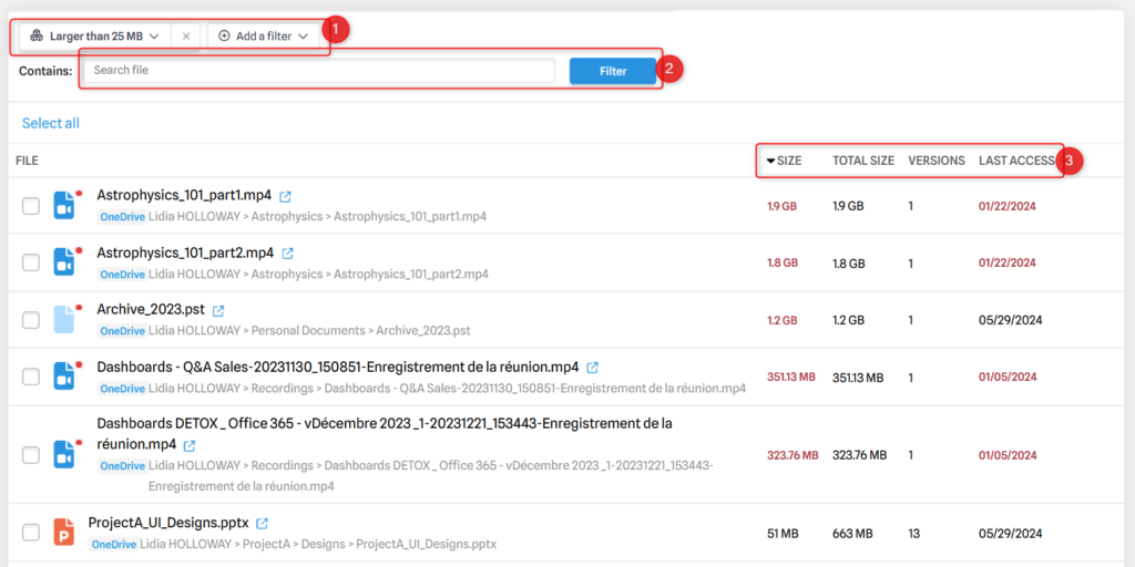 *These features are available on all MyDataManagement tabs (OneDrive, Teams, SharePoint), and will not be specified again in this guide.