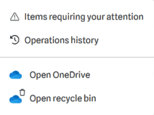 Clicking on the OneDrive tab takes you to your OneDrive dashboard, containing the following items: