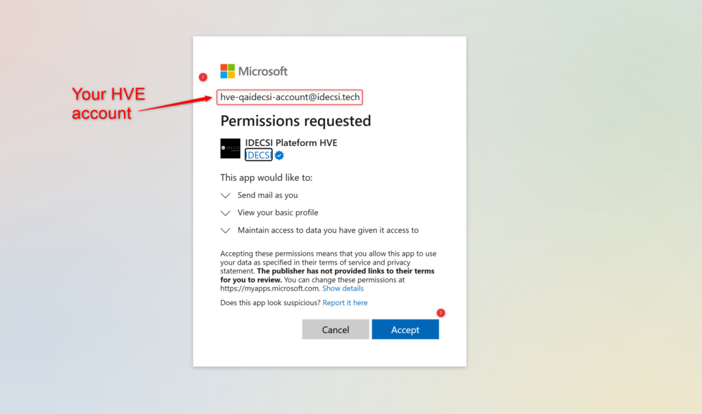 To encourage users to adopt the solution, we propose using an application that will enable our platform to send emails from your Microsoft tenant. If not, IDECSI will use Graph API to send emails from a generic address ().